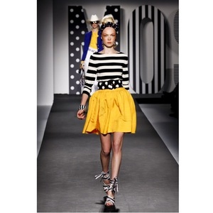 Ο οίκος Moschino για το φετινό καλοκαίρι "κράτησε" την αναμενόμενη παιχνιδιάρικη διάθεσή του με μια δόση από 50's. Τα πουά ασπρόμαυρα αξεσουάρ είχαν την τιμητική τους και το παιχνίδι των έντονων χρωμάτων σε συνδυασμό με τα ριγέ έκαναν την εμφάνισή τους κατά τη διάρκεια όλου του catwalk. Υιοθέτησε κι εσύ το συγκεκριμένο look με τις πιο φθηνές λύσεις της αγοράς.