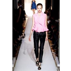 O οίκος Yves Saint Laurent για την άνοιξη 2012 ενσωματώνει την αυστηρή κομψότητα με τον αισθησιασμό παρουσιάζοντας μία συλλογή με ζωηρή διάθεση και έντονα χρώματα όπως το μπλε του ωκεανού,το πράσινο της ελιάς, το βιολετί και το φούξια. Silk και σατέν υφάσματα παιρνουν μορφή σε μία μεγάλη ποικιλία από φούστες ως το γόνατο με σκίσιμο, αυστηρά παντελόνια, ζακέτες και παλτό σε Α γραμμή. Μία συλλόγη που αναδεικνύει την αισθησιακή πλευρά και το μυστήριο της γυναίκας.