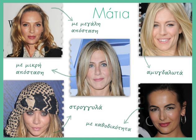 Σύμφωνα με μια πολύ σοφή ρήση είμαστε όλοι ίσοι αλλά δεν είμαστε ίδιοι! Τι σημαίνει αυτό στην πράξη; Ότι όλες πολύ σωστά διεκδικούμε το δικαίωμα στην ομορφιά, ωστόσο ο δρόμος που πρέπει να ακολουθήσουμε δεν είναι για όλες μας ο ίδιος. Ας πάρουμε για παράδειγμα το σχήμα των ματιών μας: άλλη έχει αμυγδαλωτά, άλλη μάτια με καθοδικότητα, άλλη μάτια με μακρινή απόσταση από τη μύτη ή πολύ κοντινή. Εσύ σε ποια κατηγορία ανήκεις; Έχουμε και λέμε, λοιπόν...